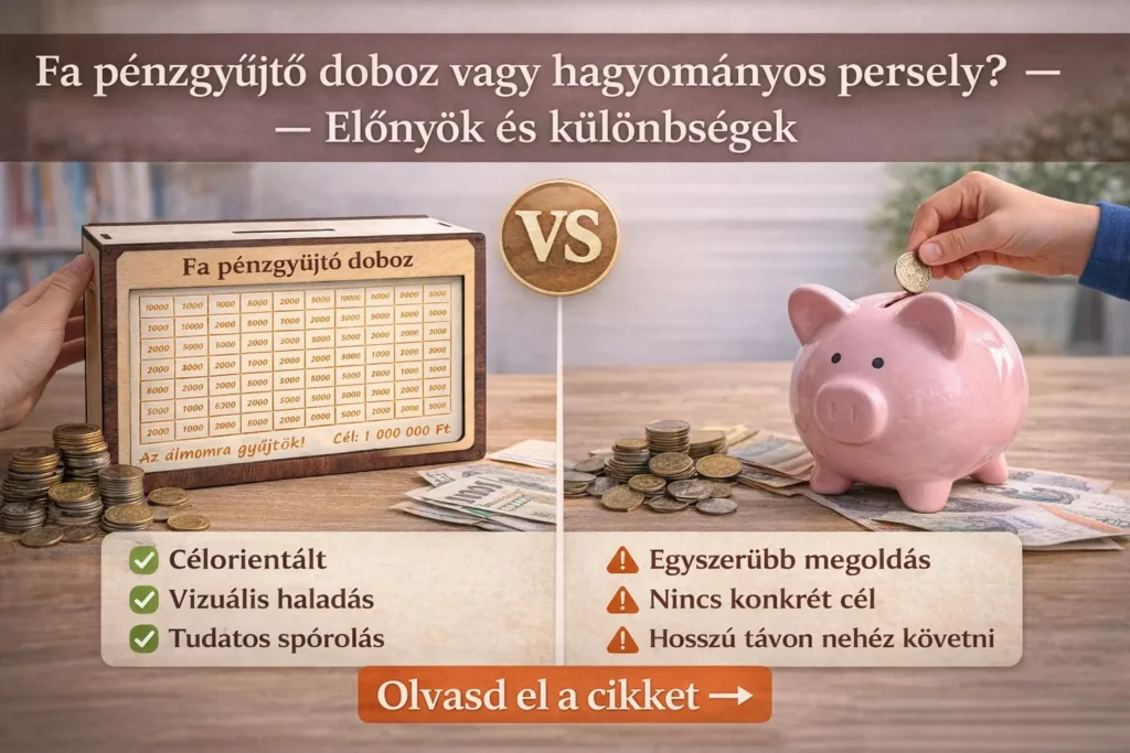 Ha megtakarításról van szó, sokakban felmerül a kérdés: fa pénzgyűjtő doboz vagy hagyományos persely a jobb választás? Bár mindkettő a spórolást szolgálja, a működésük, hatékonyságuk és céljuk jelentősen eltér. Ebben a cikkben objektíven összehasonlítjuk a két megoldást, hogy könnyebb legyen a döntés.