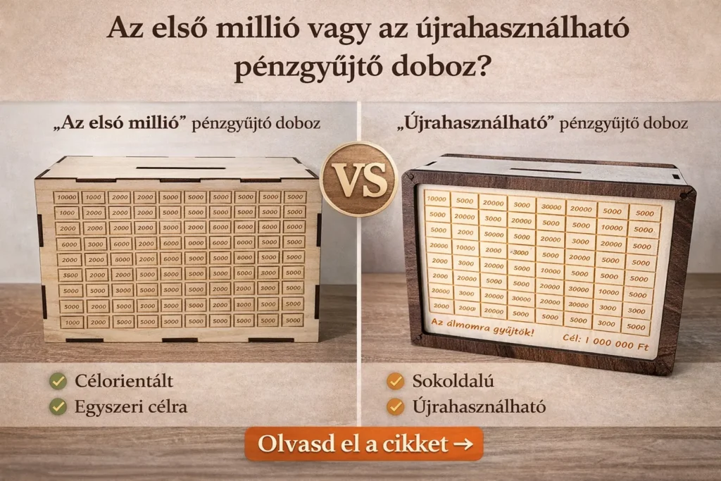 👉 Link: Újrahasználható pénzgyűjtő doboz – 1 millió forintos célhoz