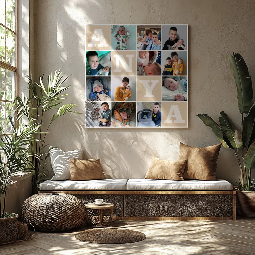 Az Anyák napi fotókollázs vászonkép remekül mutat nappaliban, hálószobában vagy akár ajándékként átadva egy különleges családi pillanat részeként. A személyes fotók miatt minden darab egyedi, ezért ez a termék nemcsak szép, hanem valóban érzelmi értéket is hordoz.