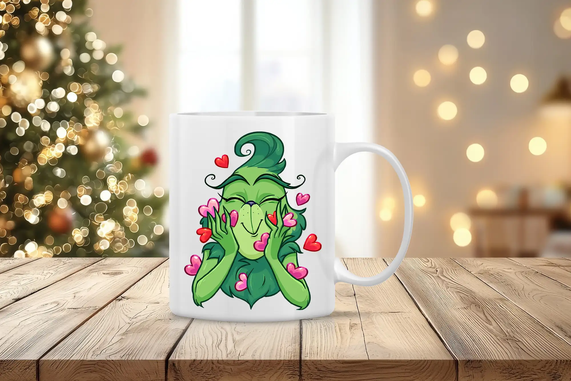 Aranyos Grincs szerelem bögre karácsonyi mintával. 3 dl-es kerámia bögre szublimációs nyomtatással – élénk színek, tartós minőség, tökéletes ajándék nőknek!