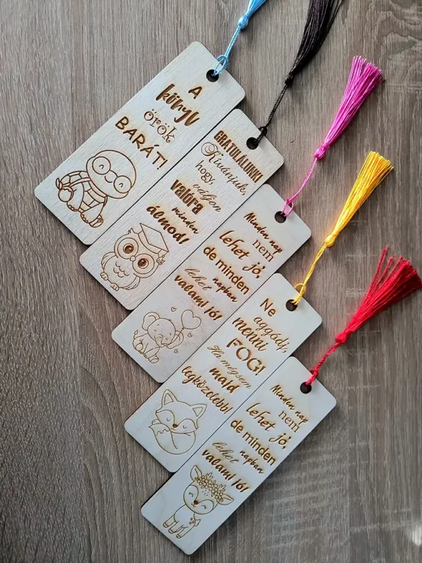 A könyvjelző nemcsak praktikus kiegészítő, hanem egy kedves, maradandó emlék is. A névre szóló fa könyvjelző gravírozott felirattal készül, így minden darab személyes és egyedi.