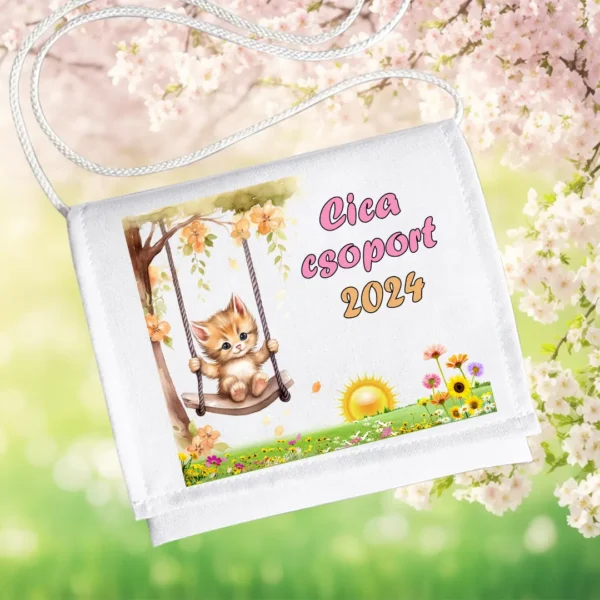 A Cica csoport számára készült hintás cicás minta játékos, mesés hangulatot áraszt, amely tökéletesen illik az óvodás kor vidám világához.