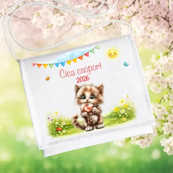 Ovis ballagó tarisznya – Cica csoport, 2026 (szívecskés cicás minta)